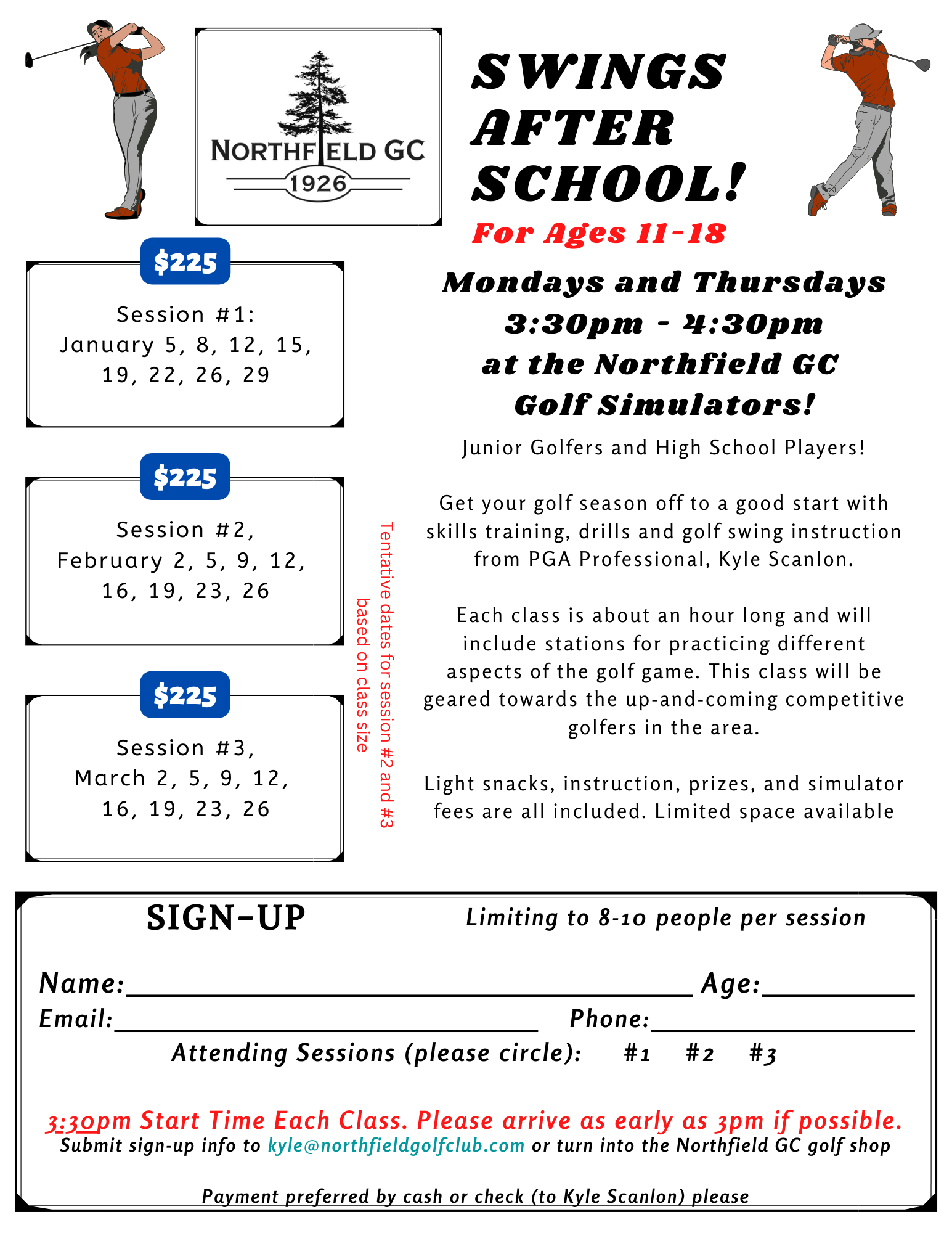 Cost is $95 for Northfield GC members and $125 for Non-Members